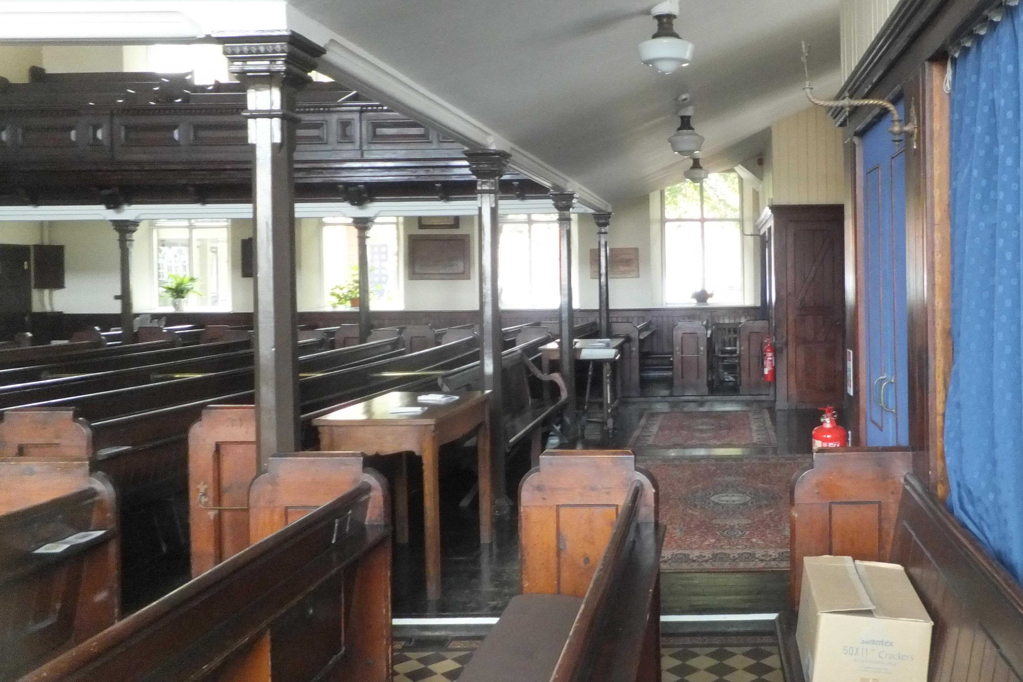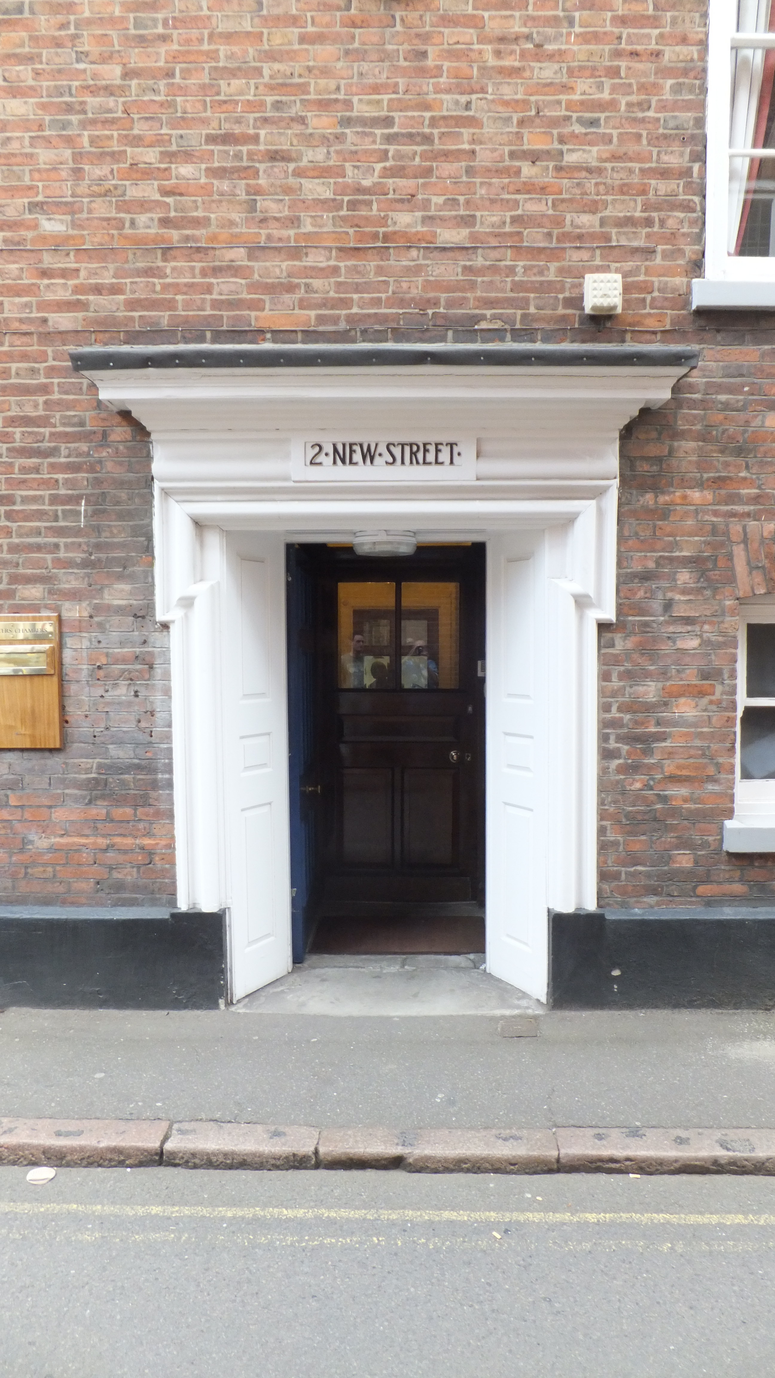 Crossing the Butt-close, to the alley on the right, we pass the Presbyterian, or (13) Great Meeting House, built, as appears by a date on the walls, 1708; the congregation of which was first established in 1680. The seats are calculated to accommodate eight hundred persons. Unable to gain access, we were able to admire the Georgian interior (hopefully not being taken for prospective burglars):