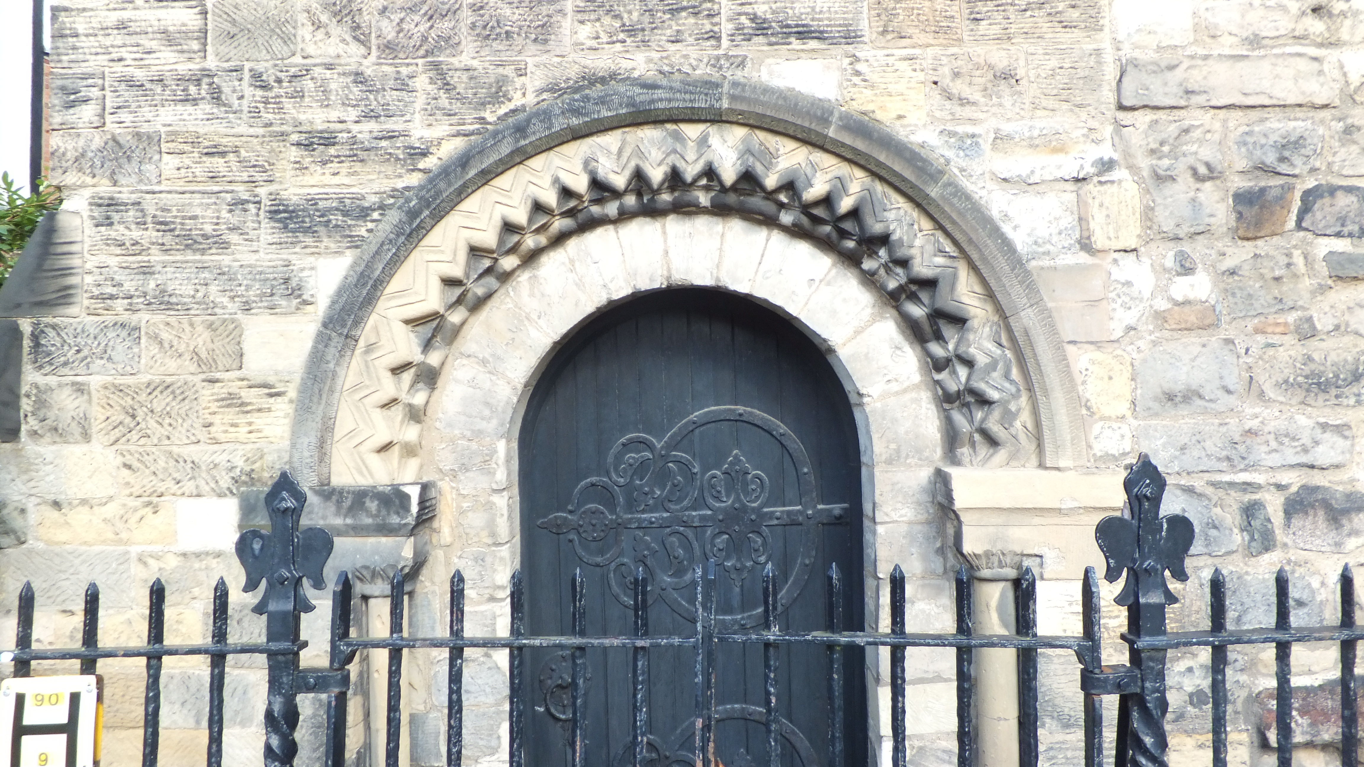 The next object that engages the eye is the church of (19) All Saints, projecting on the west end into the street, exhibiting in its clock an humble copy of the machinery of St Dunstan’s, in London. It is a small neat church with three aisles and a low tower, and nothing in its architecture attracts regard, apart from a fine Norman door arch.