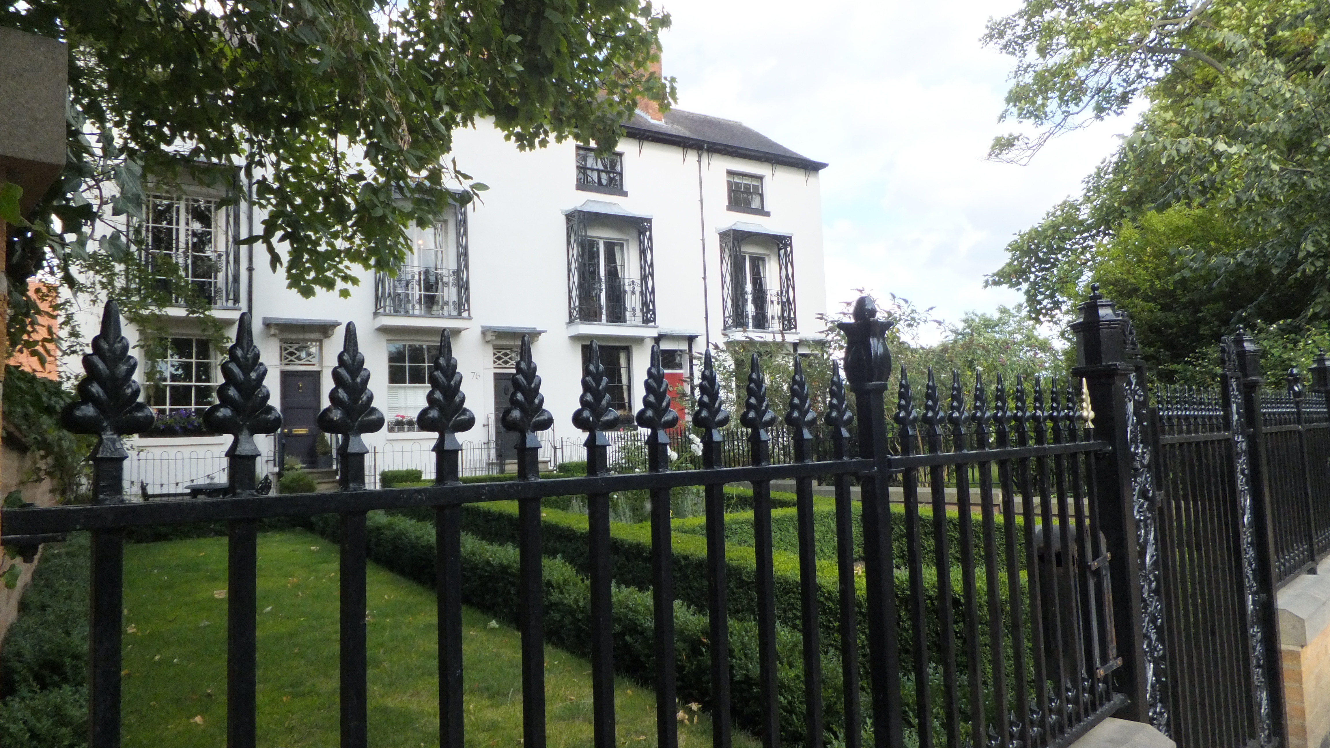 We walked south, following the map along Grange Lane, as the working day drew to a close. At the end of this street, situated on a gentle eminence affording the desirable advantages of a dry soil and open air, we perceive one of those edifices which a country more than nominally christian must ever be careful to erect, a house of refuge for sick poverty. (32) The Infirmary, which owes the origin of its institution to W. Watts, M. D. was built in 1771, nearly on the scite of the antient chapel of St. Sepulchre, and is a plain neat building with two wings, fronted by a garden, the entrance to which is ornamented with a very handsome iron gate the gift of the late truly benevolent Shuckbrugh Ashby, Esq. of Quenby.