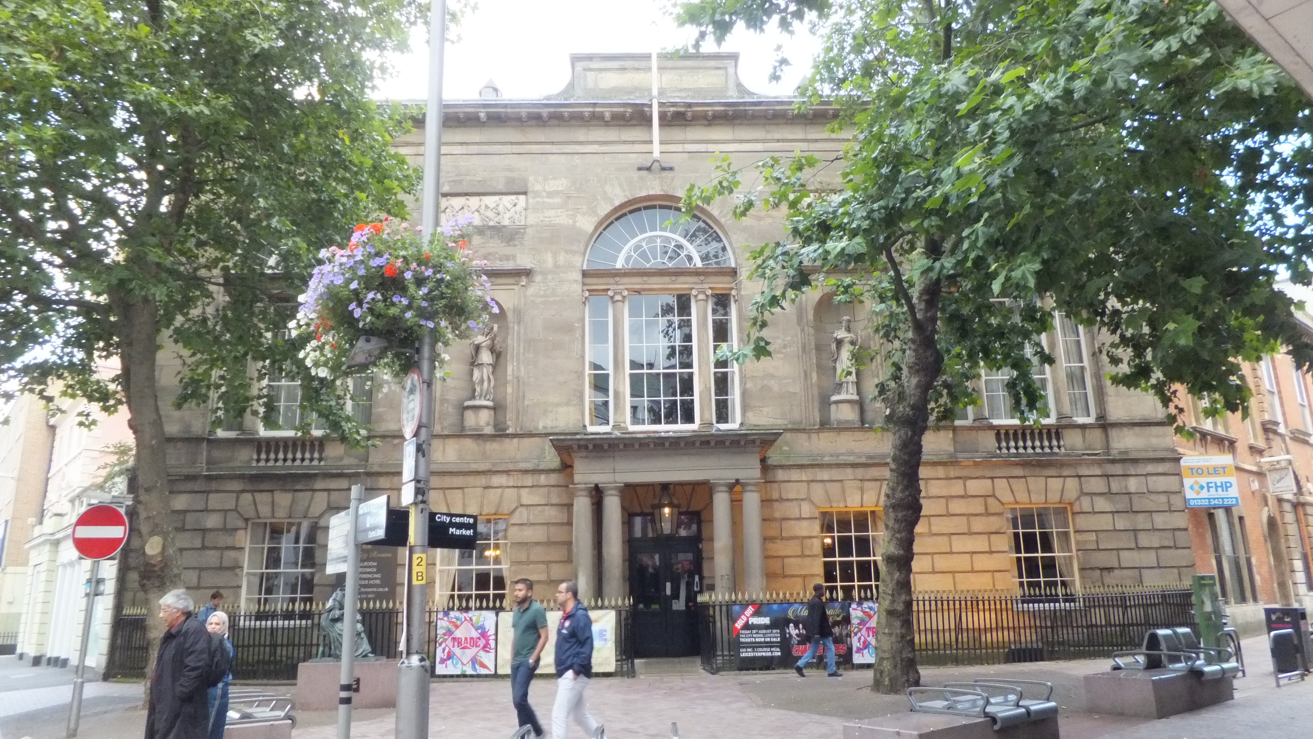 Back in the City after a Greggs Vegetable Pasty (disaster – no cheese and onion!), we saw the front of the (35) HOTEL, which name it bears, having been originally designed for that purpose, may from the grandeur of its windows, its statues, bassi relievi, and other decorations, be justly considered as the first modern architectural ornament of the town. Never a success as a Hotel, it was rebranded first as the Assembly Rooms; then as the County Rooms; and now, having come full circle back to a Hotel, as the City Rooms.
