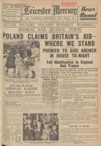 I’ll need to understand whether the Mercury – and other local papers – saw themselves as leading, or following public opinion; did they seek to comment, or simply to report? The leader article on 18 March 1939 was about Leicester Schools, rather than Chamberlain’s speech; the speech had been trailed in the edition published late afternoon on 17 March, and was reported in detail on 18 March.
